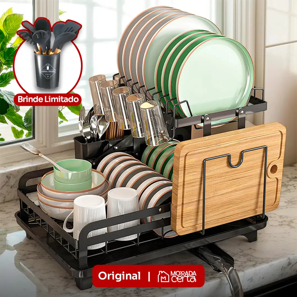 Com o Escorredor 3 em 1, você não apenas otimiza espaço, como também adiciona sofisticação à sua cozinha. A união perfeita entre design, praticidade e funcionalidade.