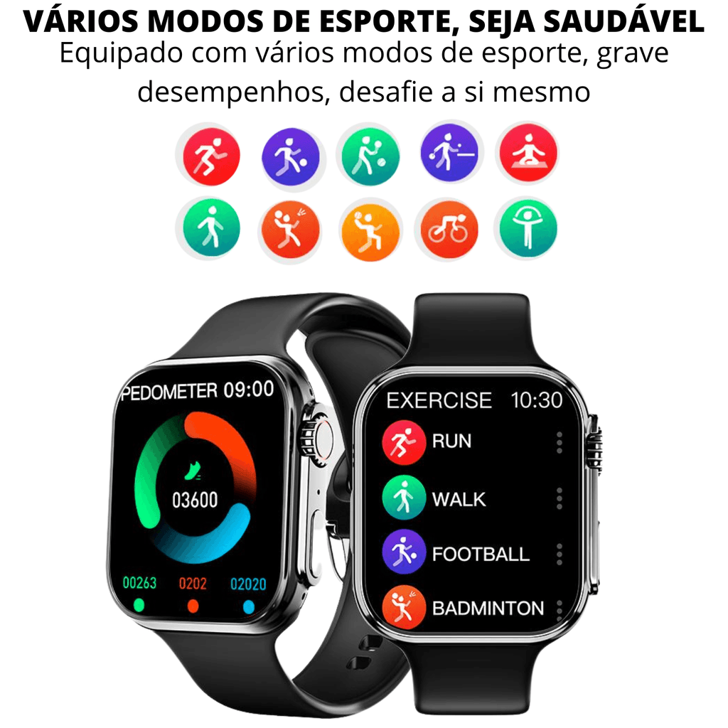 Quanto mais você souber sobre sua saúde, melhores serão suas decisões. O Smartwatch Ultra tem sensores avançados para oferecer informações que ajudam você a entender melhor sua saúde. Mais versátil e duro na queda já criado. É o relógio definitivo com uma caixa de Aço Inoxidável robusta, NFC, Medidor de oxigenação do sangue, sono e frequência cardíaca de alta precisão, uma semana de bateria; além de atende/recebe mensagens e ligações e muito mais.