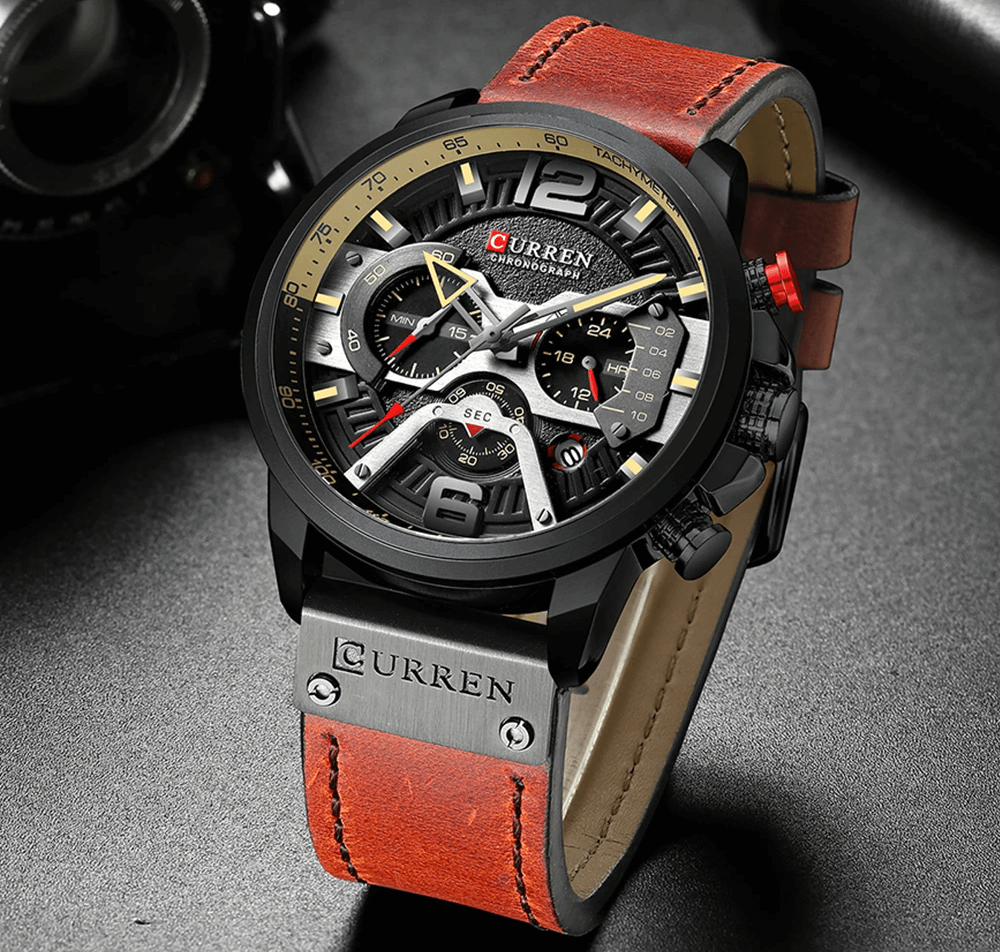 O Relógio Curren Max é feito de componentes de alta qualidade e design despojado e pulseira de couro. O mostrador duplo permite visualizar dois fusos horários simultaneamente, e possui movimento de quartzo japonês.